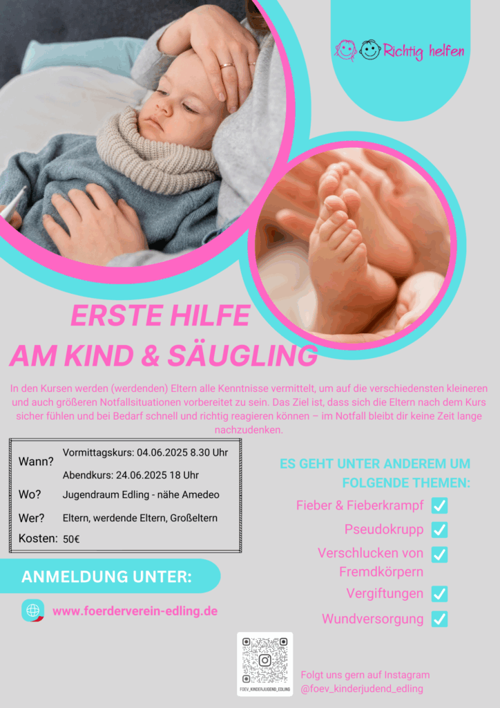 Der Erste Hilfe Kurs am Kind und Säugling war im Juni geplant in Zusammenarbeit mit richtig-helfen.com.
